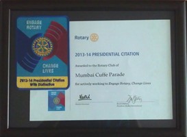 Rotary International Presidential Citation with Distinction for the Rotary Year 2013-14.